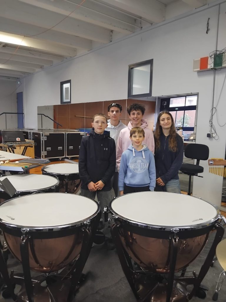Le pupitre des percussions est actuellement occupé par cinq musiciens : Anatole, Louison, Nicolas, Marie et Clément.